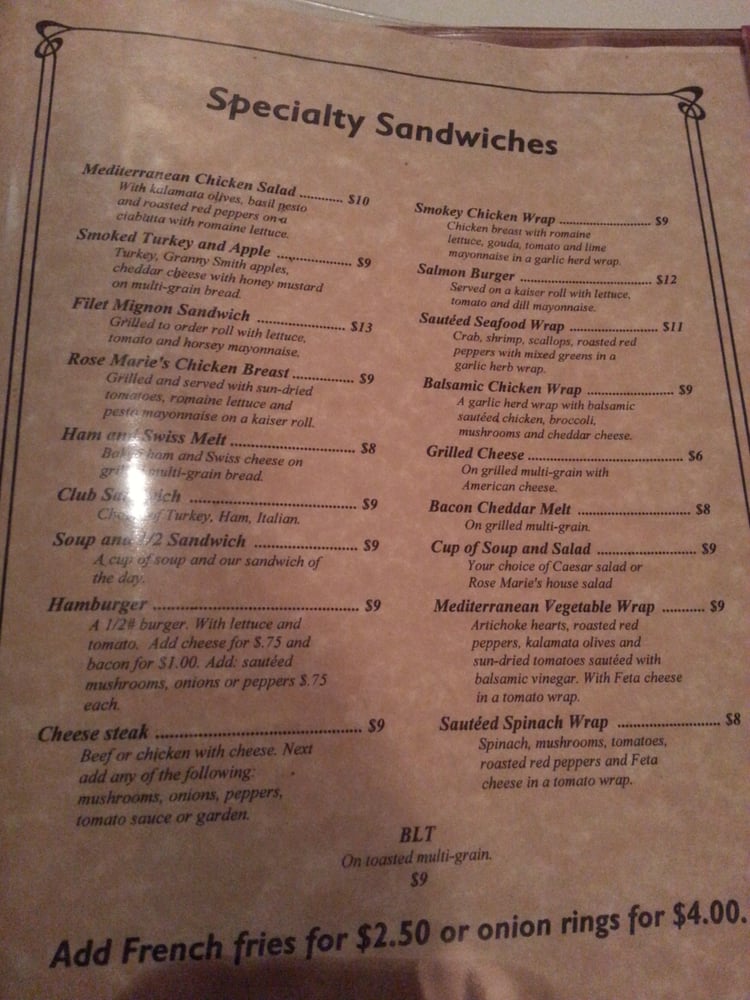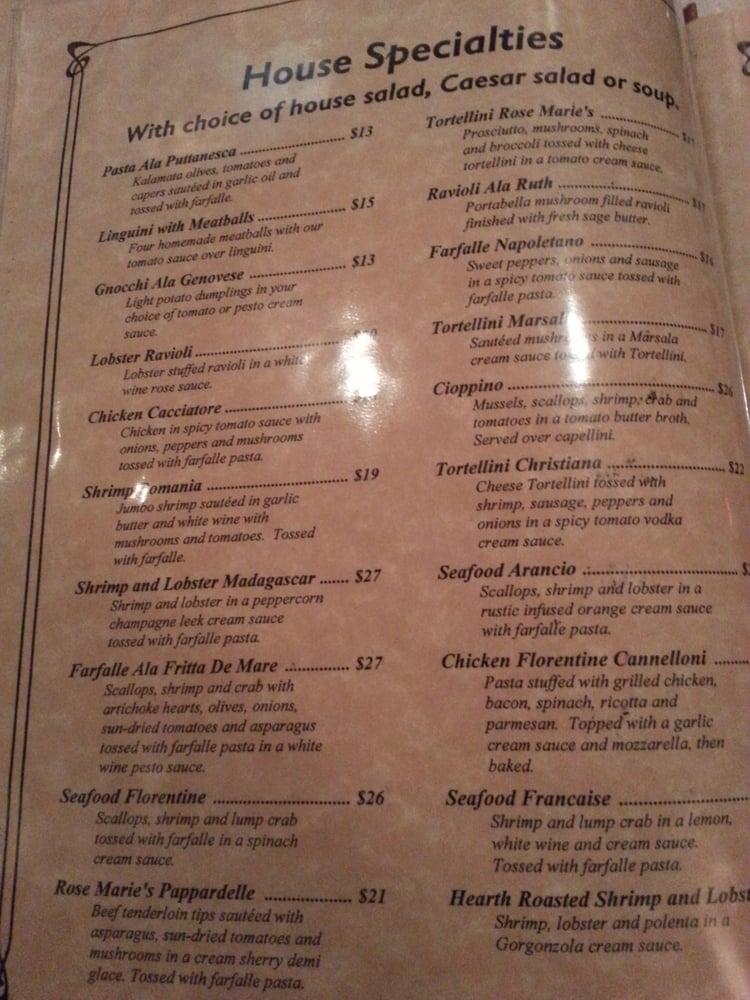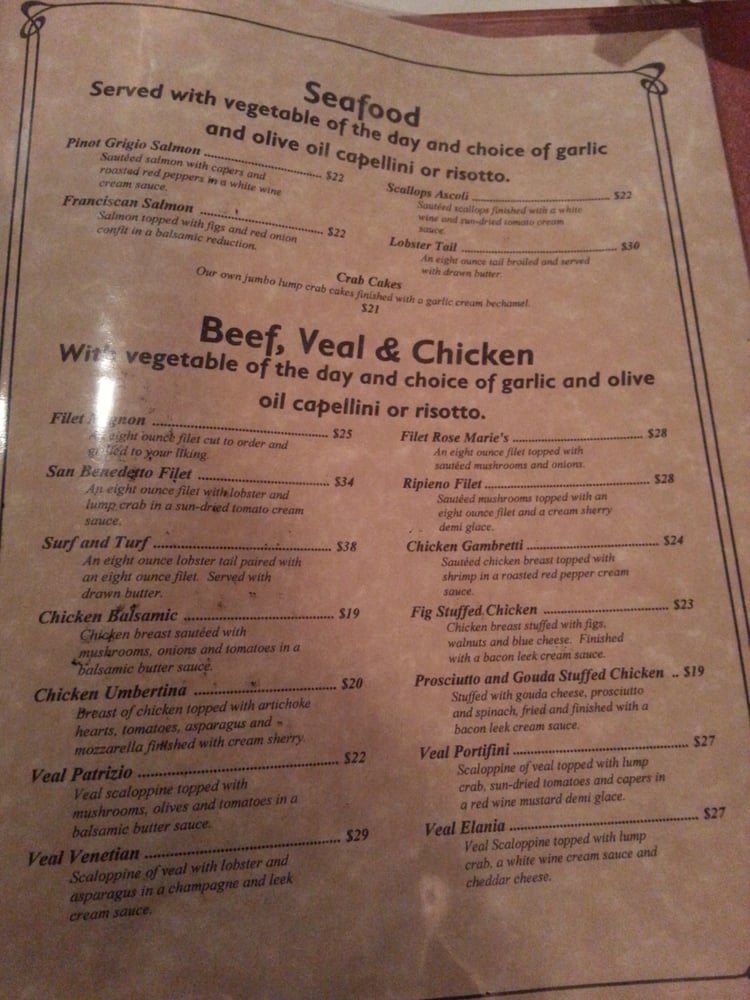 Introducing Rose Marie's, an Italian restaurant located at 26 E Main St in Bloomsburg, PA. This hidden gem offers a diverse menu with options like Lobster Tail, Franciscan Salmon, and Farfalle a La Fritta De Mare. Customers rave about the friendly service and delicious food, with highlights including the Ravioli Ruth and lasagna bolognese. The atmosphere is described as intimate and family-oriented, making it a go-to spot for many locals. Prices are reasonable and the staff is known for their attentiveness and welcoming vibe. Overall, Rose Marie's is a solid choice for sit-down dining with a focus on Italian cuisine, offering a memorable dining experience for anyone looking for a satisfying meal.